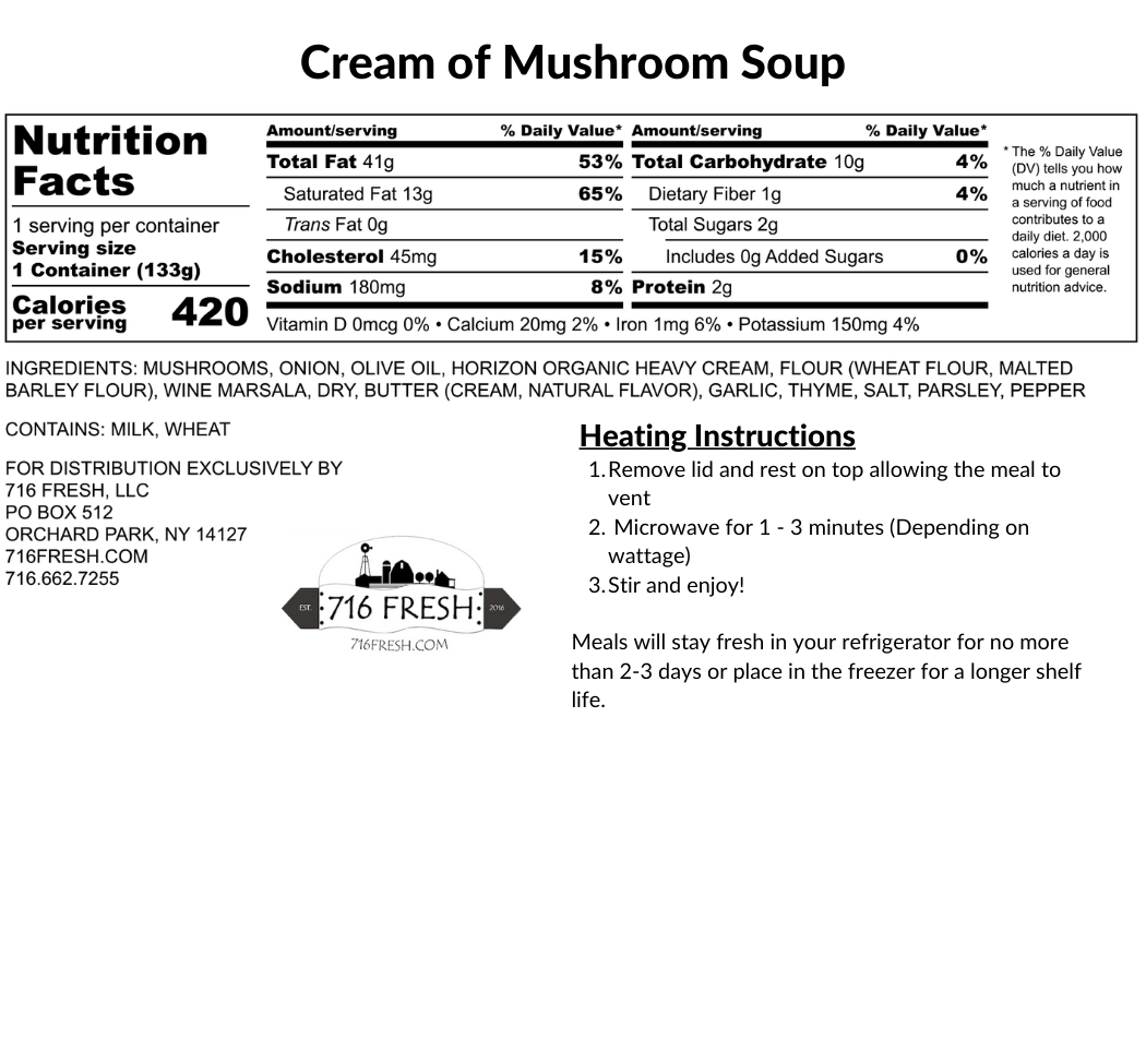 This soup is made with organic mushrooms and heavy cream, giving it a creamy texture that is sure to please.
