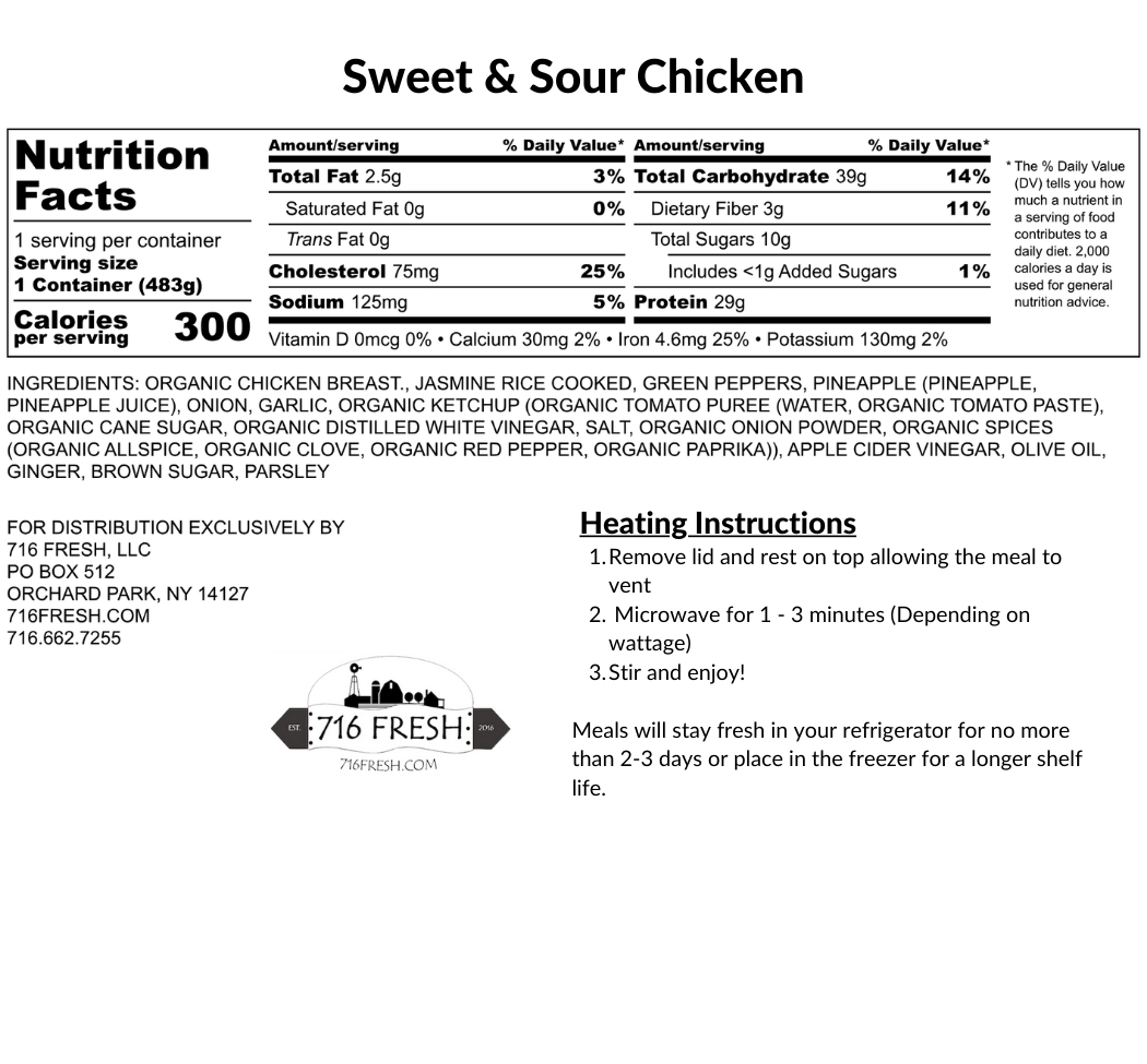 Tender Chicken Breast Served With Jasmine Rice, Sautéed Green Bell Peppers, Yellow Onion And Pineapple. Paired With A Side Of Our Homemade Sweet And Sour Sauce.